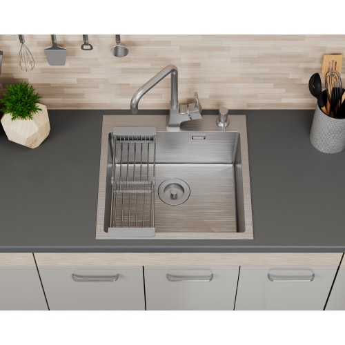 Поверхность мойки - брошированная. Во время процесса броширования ворсинки щетки двигаются по поверхности мойки, что создает равномерную текстуру с узором с легким блеском. Одно из главных преимуществ брошировки поверхности мойки состоит в том, что на ней практически не заметны следы воды и мелкие царапины.